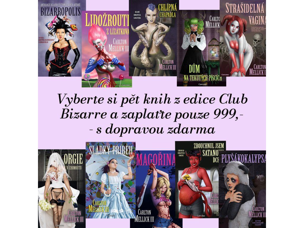 Vybrat si můžete ze všech deseti knih edice Club Bizarre a přidat lze cokoli dalšího z naší produkce. Doprava do ČR i na Slovensko (Packeta) je zdarma. Akce platí do odvolání nebo vyprodání zásob.